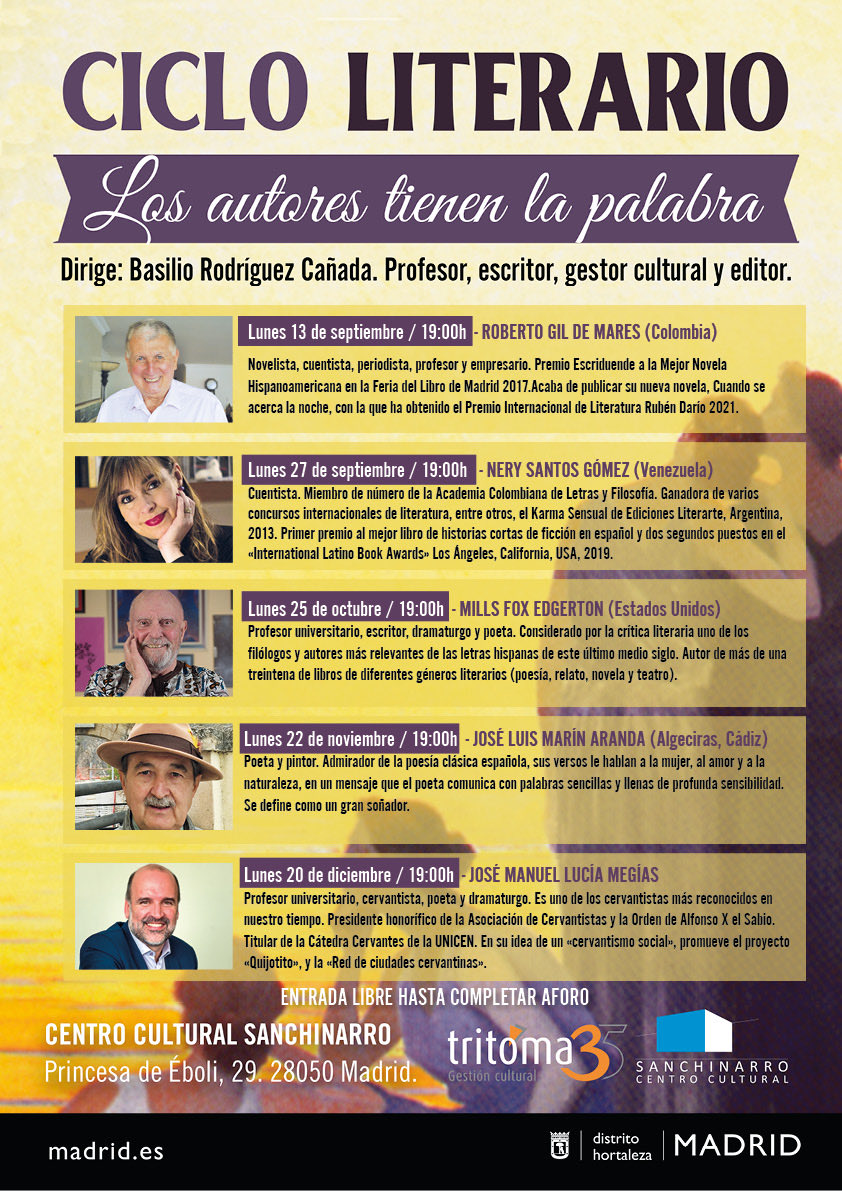 El próximo 22 de noviembre al atardecer, el Centro Cultural Sanchinarro será escenario de un nuevo encuentro cultural enmarcado en un ciclo literario denominado “Los autores tienen la palabra”.